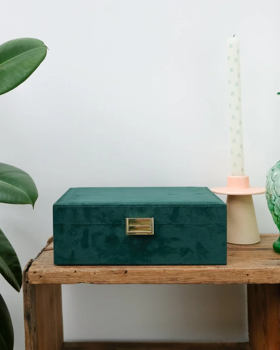 Chouchoutez vos bijoux dans notre boîte à bijoux Louise en velours. Son intérieur en velours ultra-doux offre de nombreux emplacements adaptés à chaque type de bijoux. Ce qui rend Louise à la fois fonctionnelle et jolie.