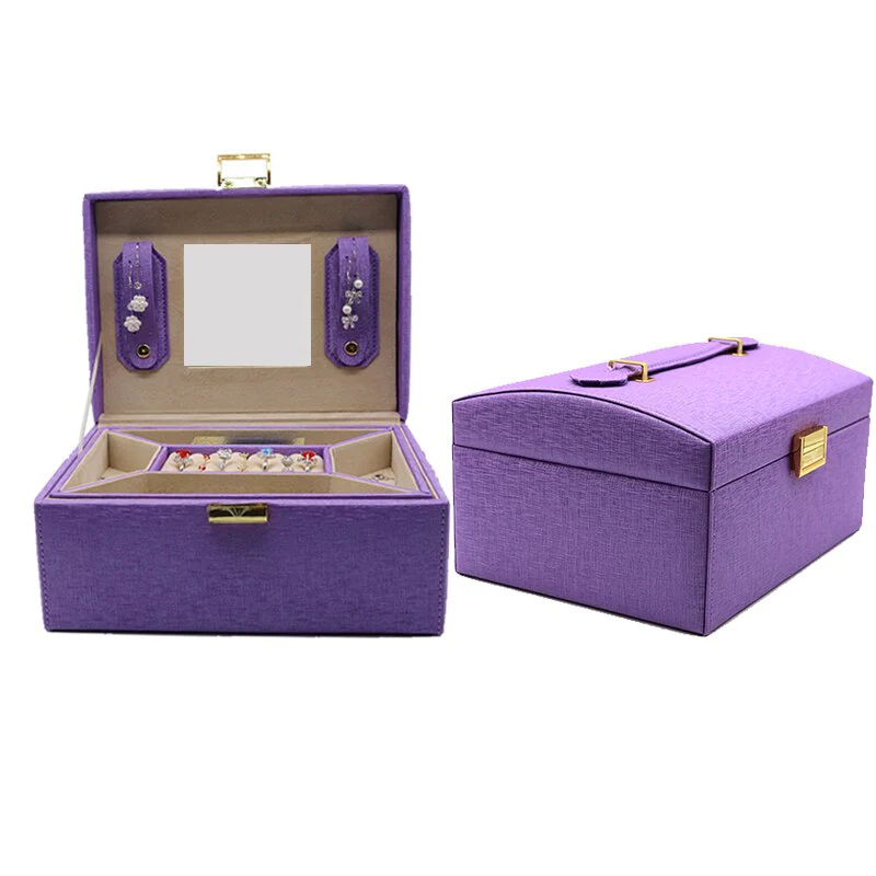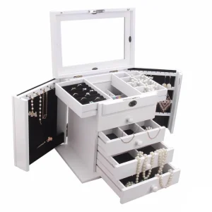 Le rangement est optimisé pour votre collection. L’intérieur est tapissé de velours pour garder vos bijoux dans un état irréprochable. Un plateau amovible est parfait pour les petits objets comme les bagues et les boucles d’oreilles, et révèle en dessous un espace plus large pour les bijoux encombrants. Un miroir est intégré au couvercle et une serrure protège vos trésors. C’est le cadeau original et idéal pour toute femme soucieuse de l’organisation et de la protection de ses bijoux. Profitez de la livraison standard offerte 🚚.