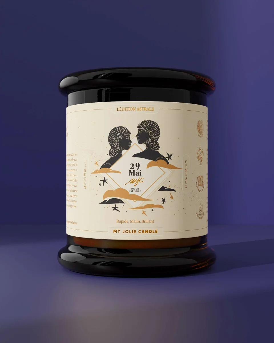 Une bougie parfumée personnalisée selon sa date de naissance (29-05). Le cadeau unique pour les fans d’astrologie : un portrait astral et un parfum dédié. Format généreux de 300g, cire à base végétale et mèche en fibres naturelles de coton. Co-créée avec des astro-psychologues renommées.