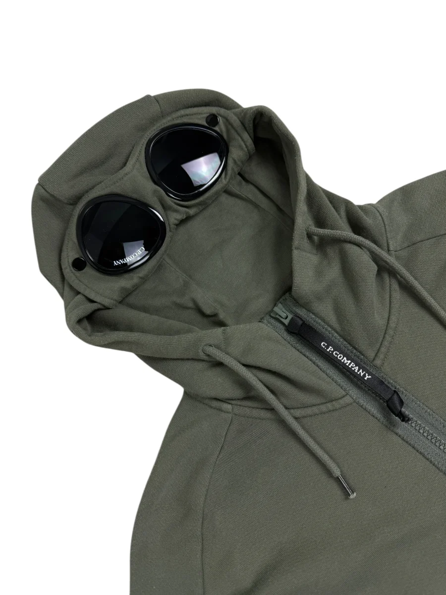 Ce gilet C.P Company Goggle Jacket associe performance technique et design emblématique avec son tissu en coton sa capuche à lunettes réglable et ses poches zippées latérales, offrant une protection optimale contre les intempéries.