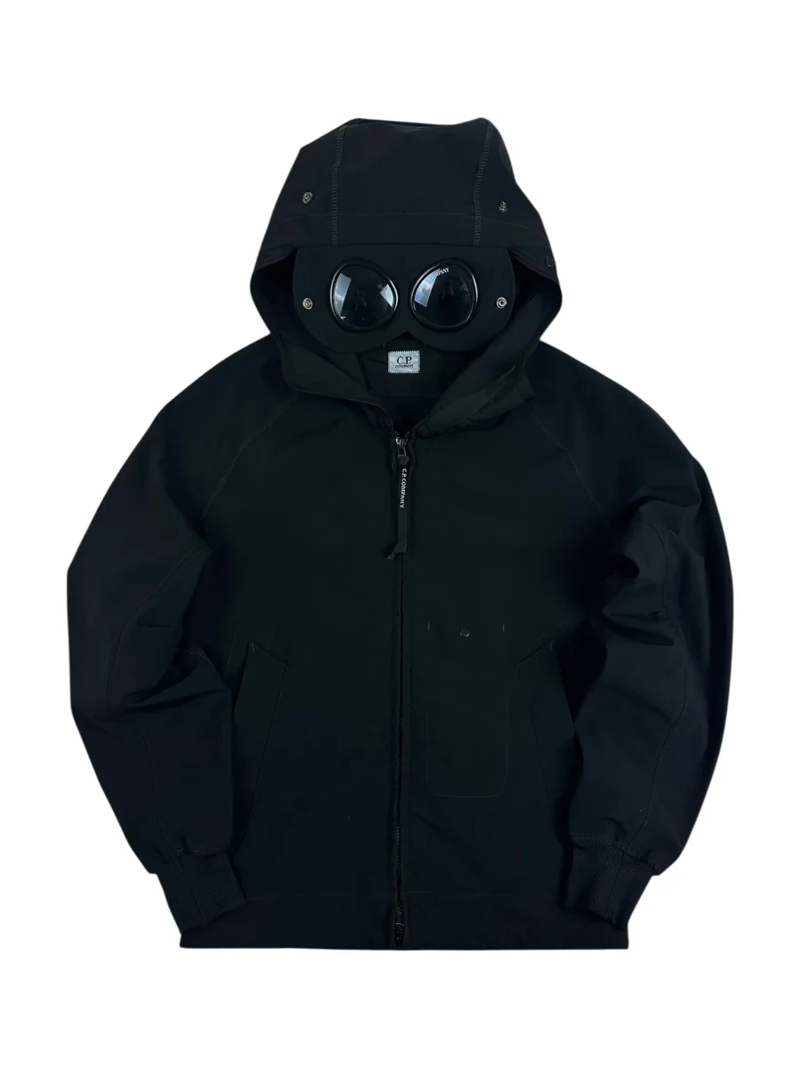 Cette veste C.P Company Shell Goggle Jacket est un vêtement technique alliant performance et style urbain, confectionné dans un tissu softshell, avec sa célèbre capuche à lunettes intégrées emblématiques de la marque.